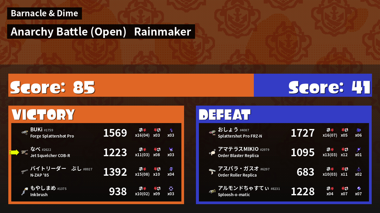 | Mode | Rainmaker - Anarchy Battle (Open) | ||