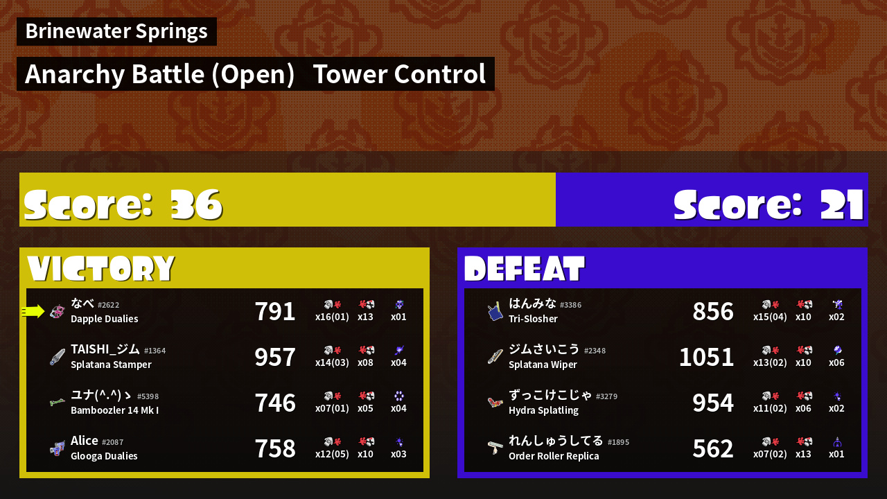 | Mode | Tower Control - Anarchy Battle (Open) | ||