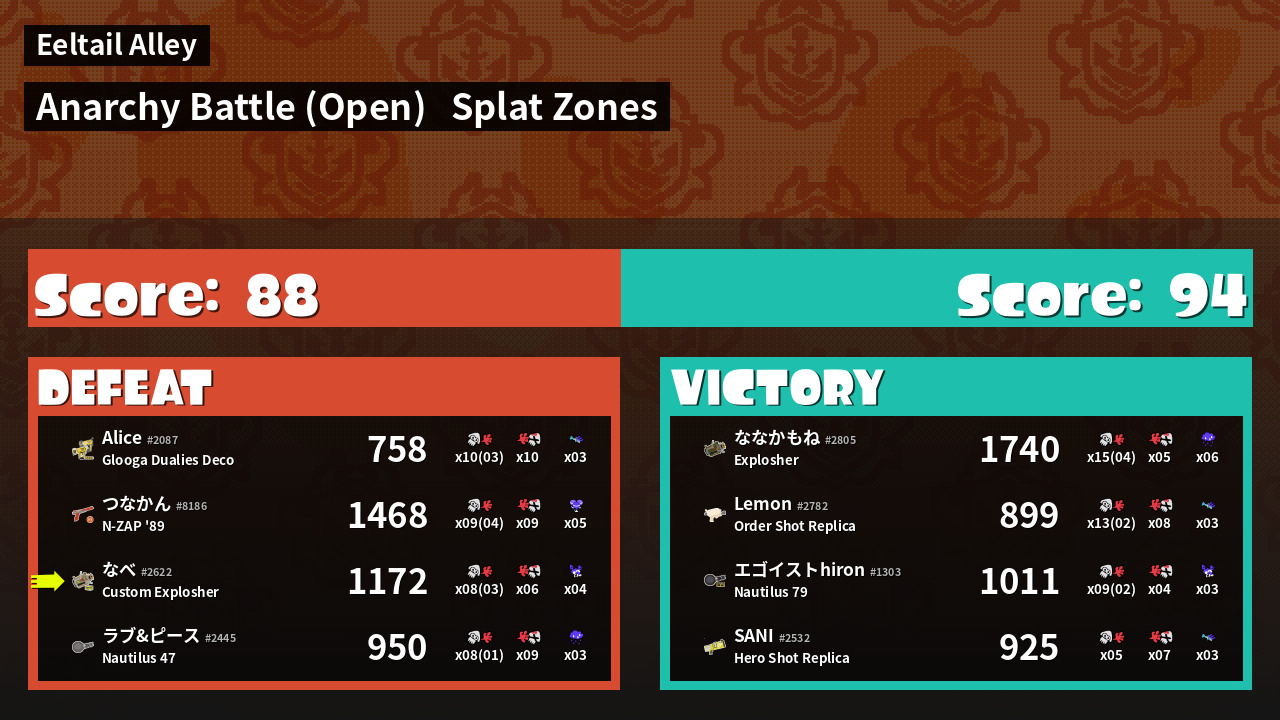 | Mode | Splat Zones - Anarchy Battle (Open) | ||