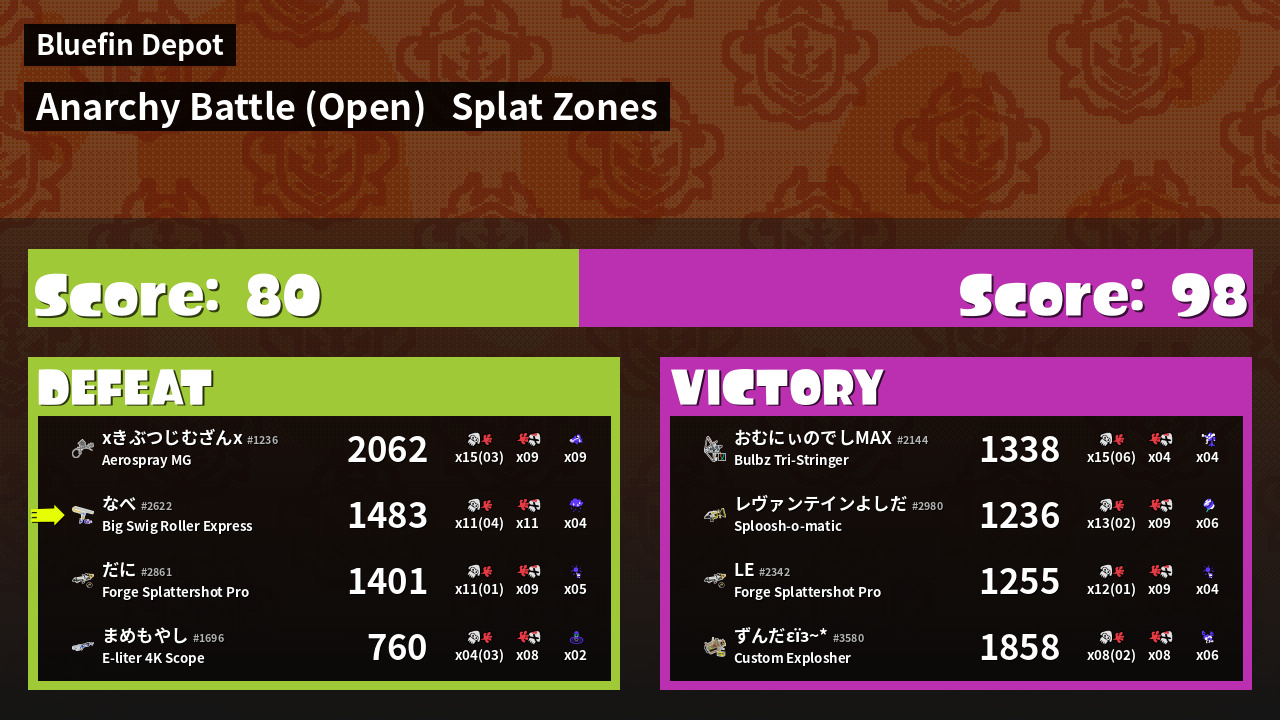 | Mode | Splat Zones - Anarchy Battle (Open) | ||