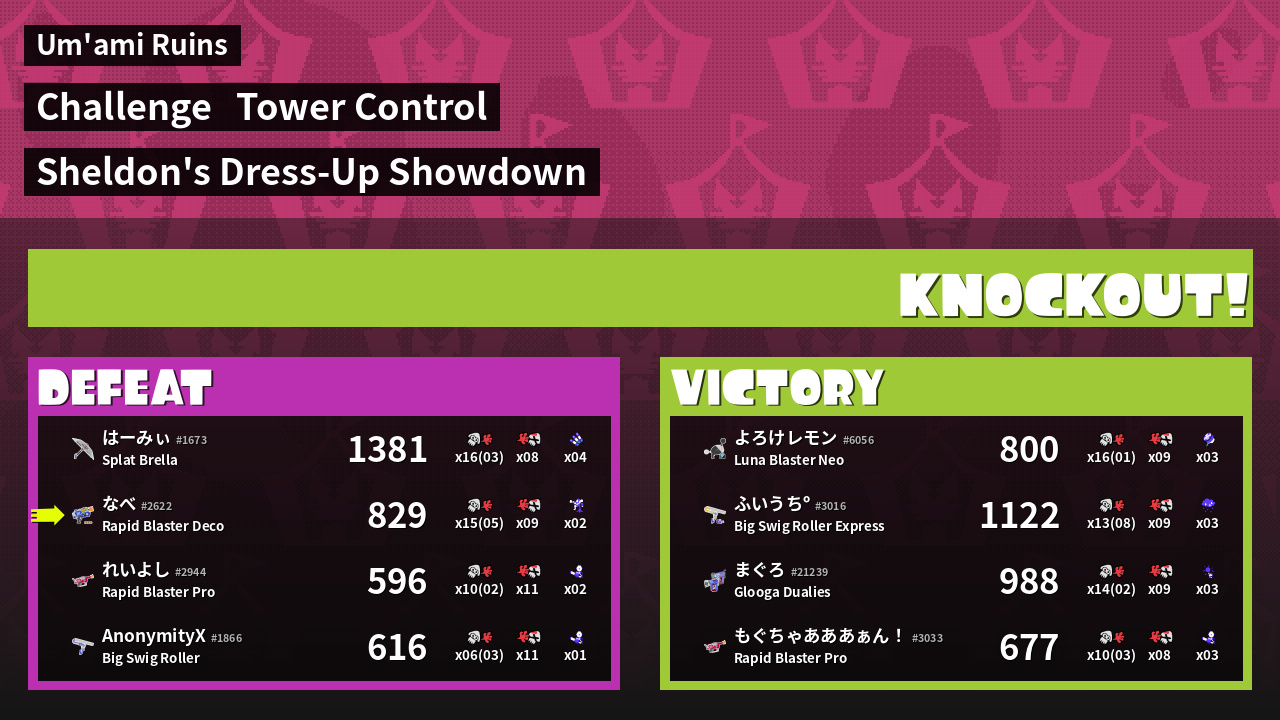 | Medals | #1 Splat Assister #1 Tower Stopper #1 Inkjet User | ||