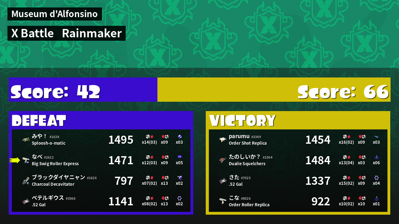 | Weapon | Big Swig Roller Express ( Angle Shooter / Ink Storm) | ||