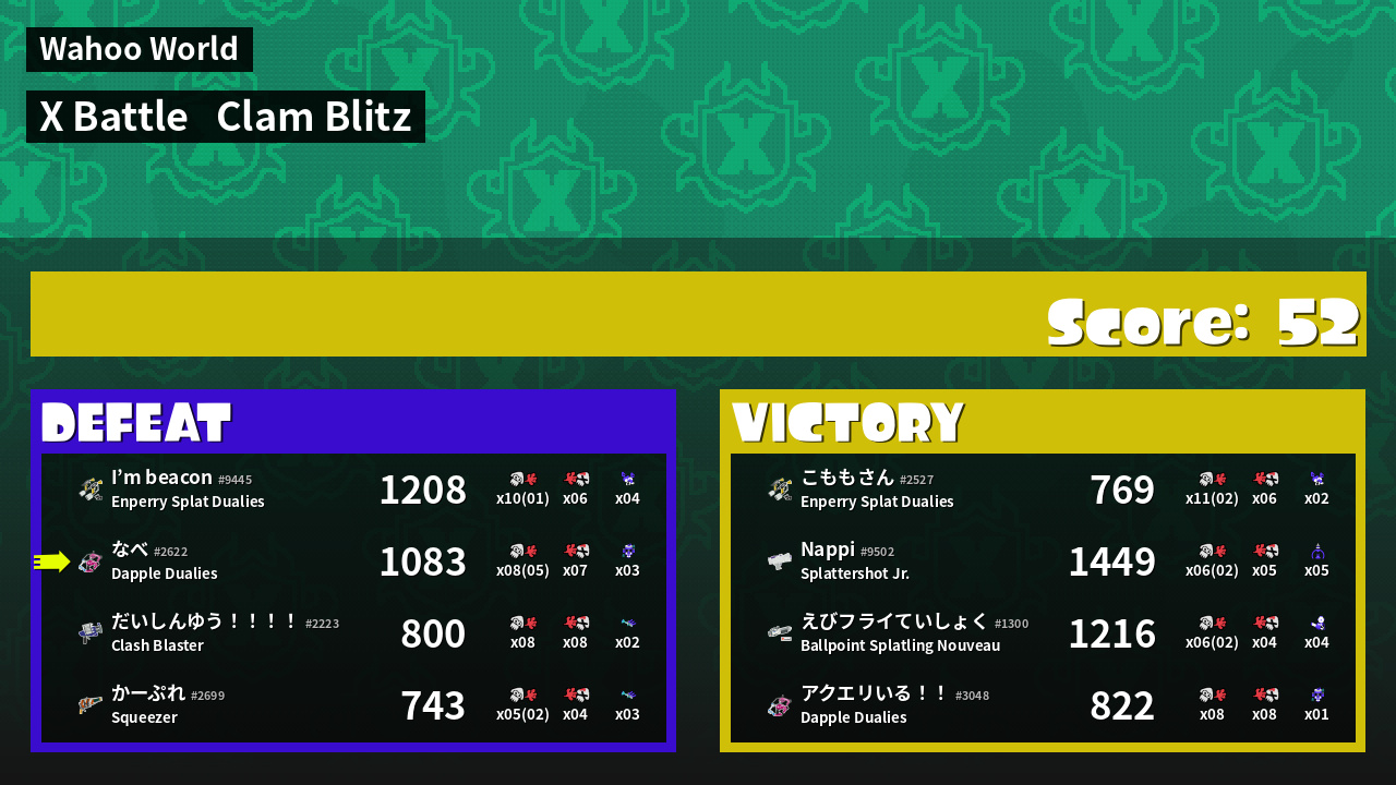 | Medals | #1 Splat Assister #1 Ground Traveler #1 Tacticooler User | ||