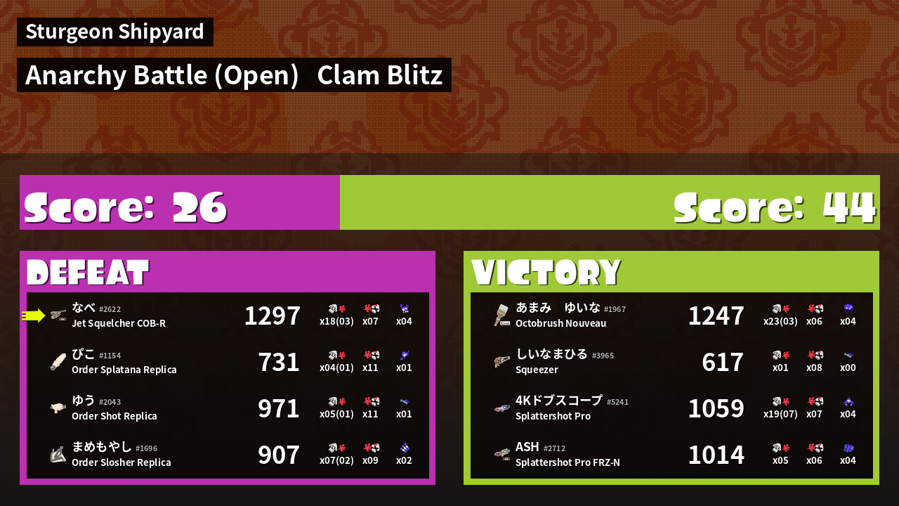 | Mode | Clam Blitz - Anarchy Battle (Open) |