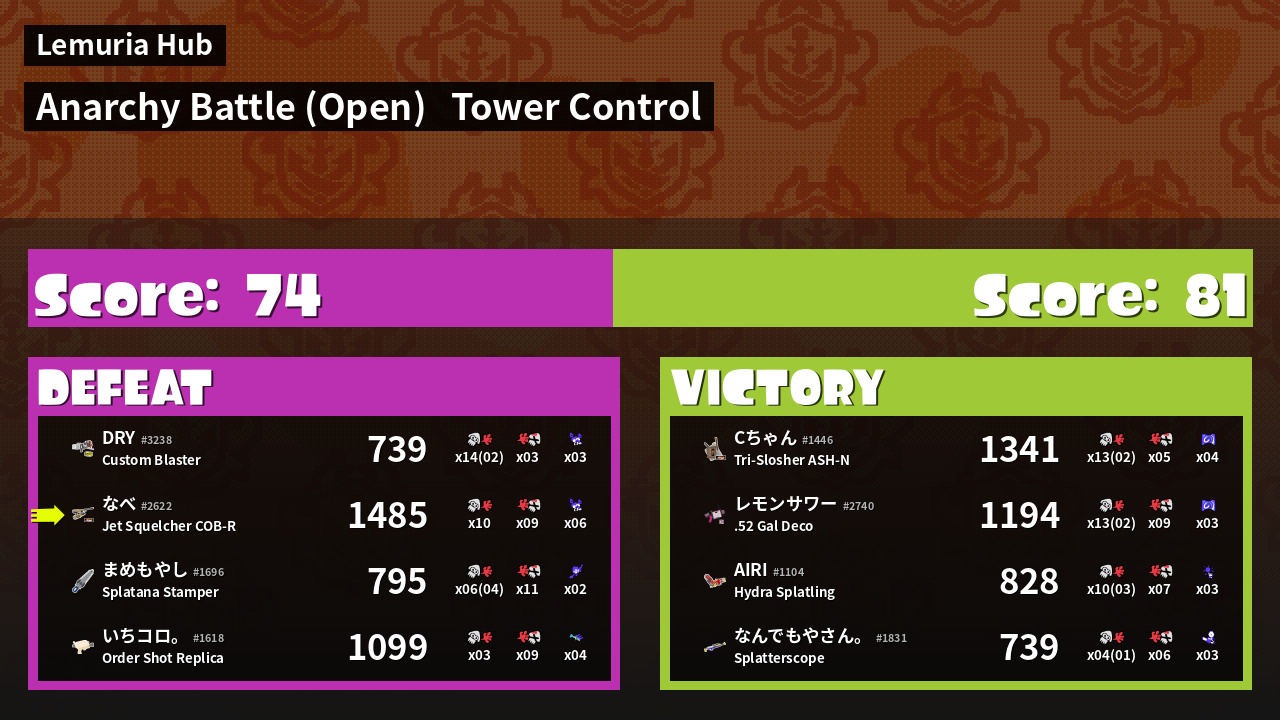 | Mode | Tower Control - Anarchy Battle (Open) |