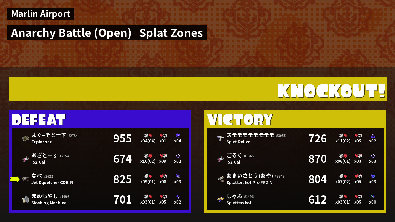 | Mode | Splat Zones - Anarchy Battle (Open) |