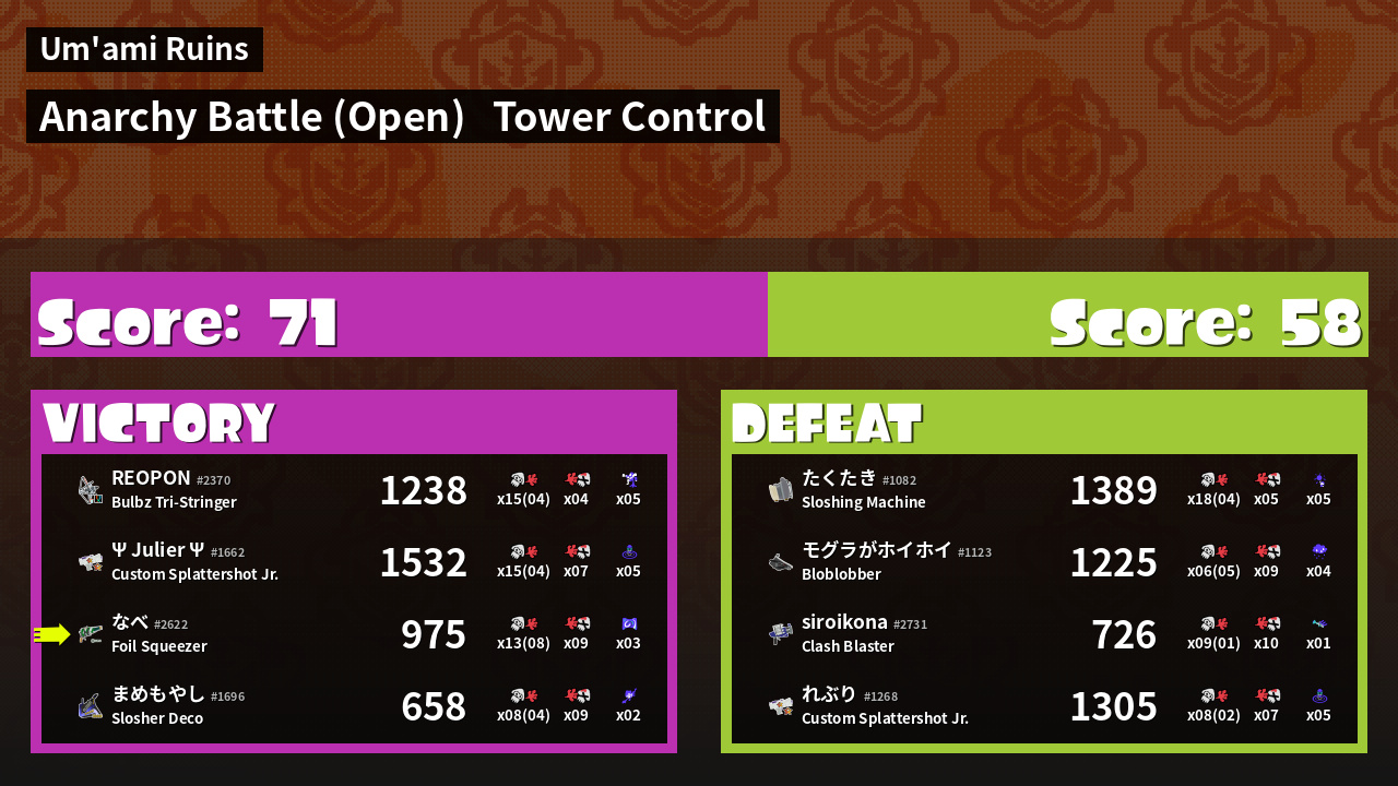 | Mode | Tower Control - Anarchy Battle (Open) |