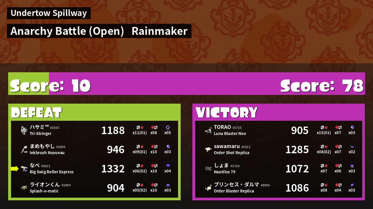 | Mode | Rainmaker - Anarchy Battle (Open) |