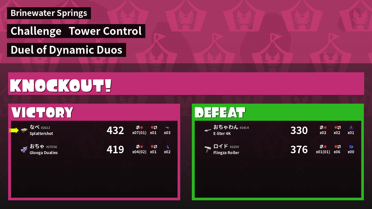 | Medals | #1 Overall Splatter #1 Score Booster Record-Score Setter | ||