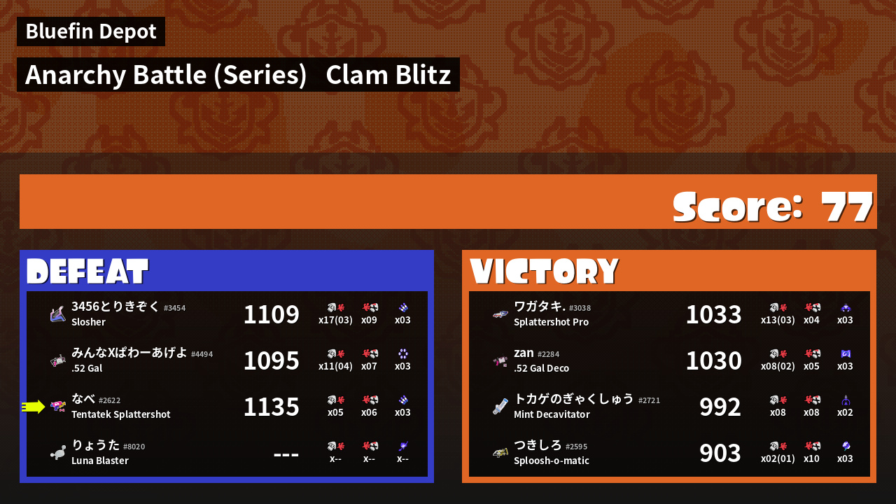 | Mode | Clam Blitz - Anarchy Battle (Series) | ||