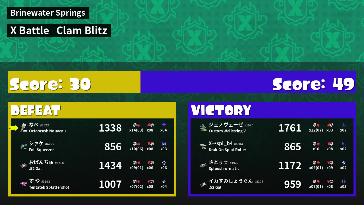 | Mode | Clam Blitz - X Battle | ||