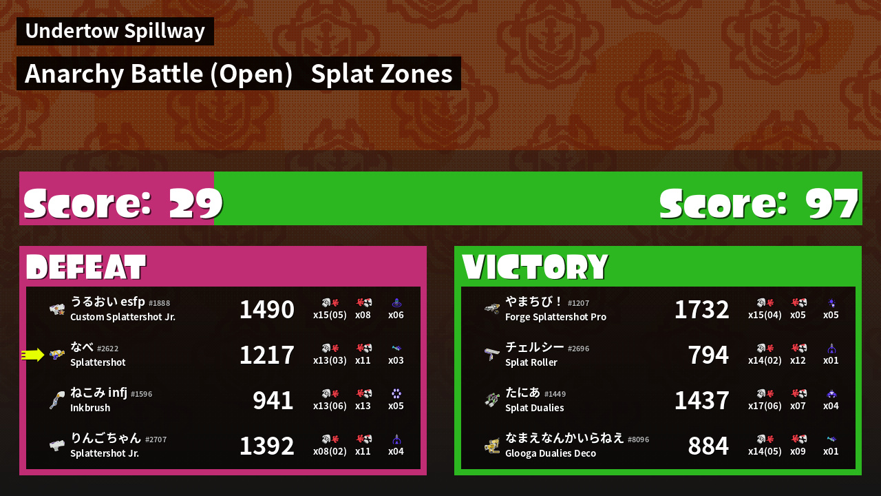 | Mode | Splat Zones - Anarchy Battle (Open) | ||