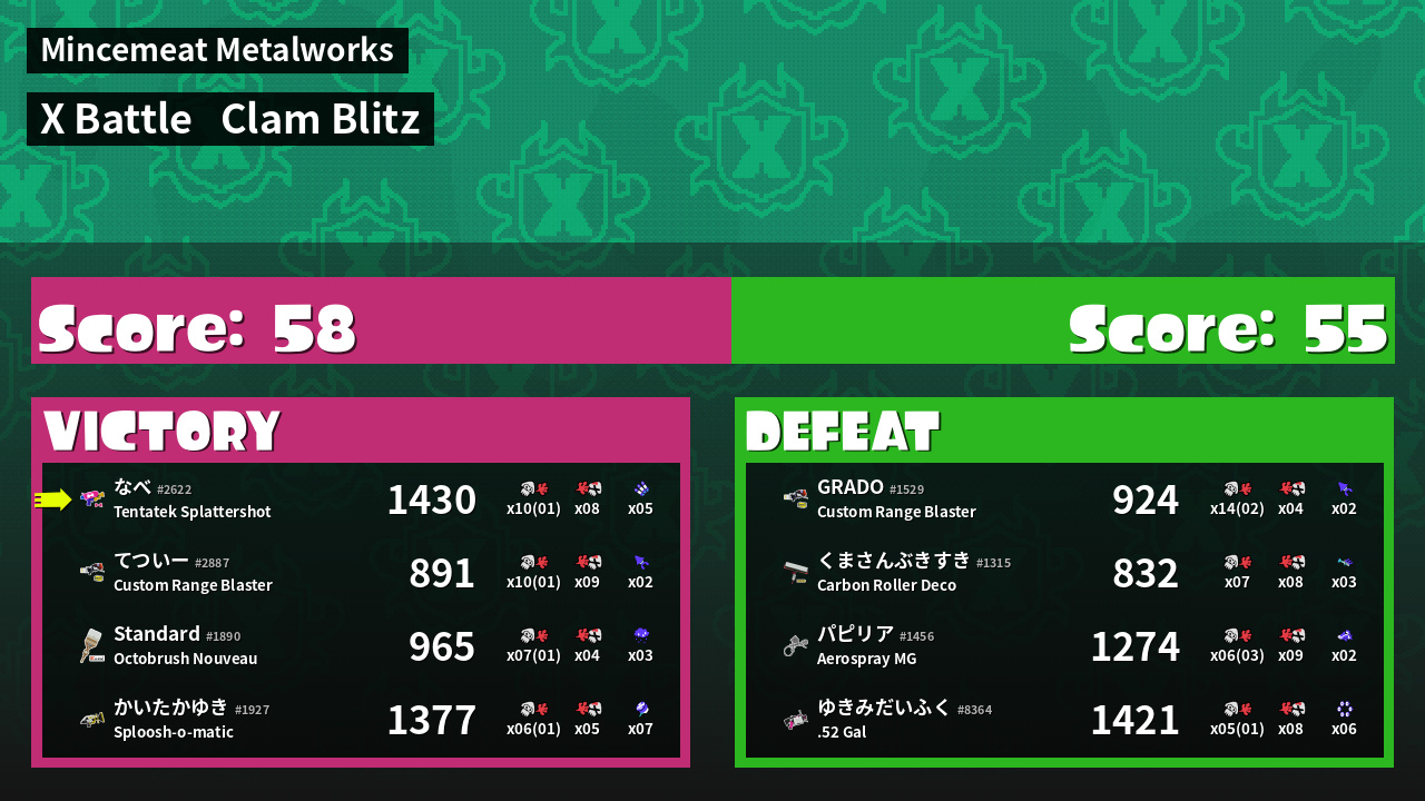 | Medals | #1 Overall Splatter #1 Turf Inker #1 Enemy Splatter | ||