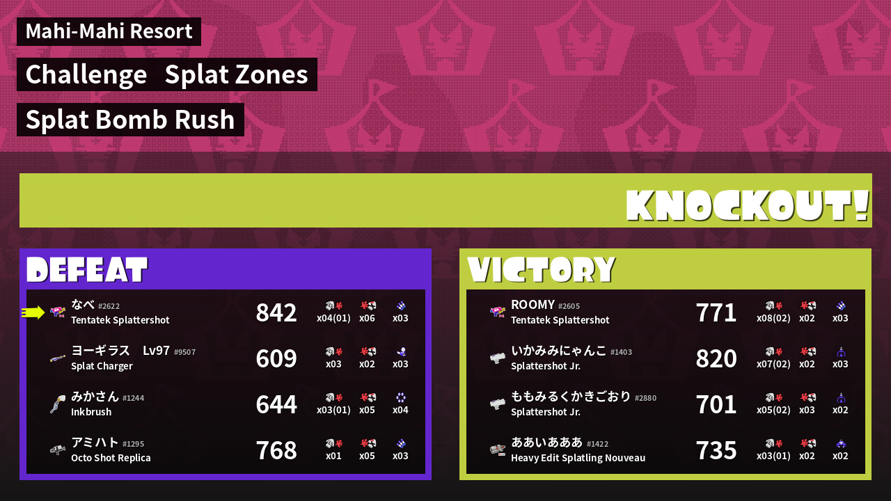 | Challenge | Splat Bomb Rush Let the Splat Bombs fly in this free-for-all! | ||