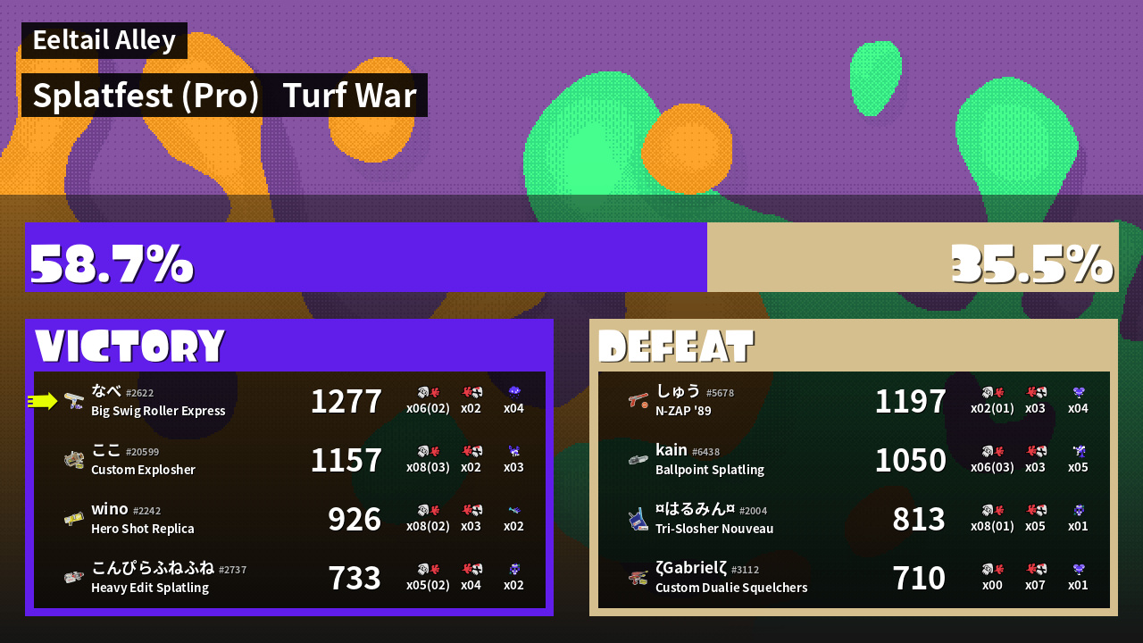 | Mode | Turf War - Splatfest (Pro) | ||