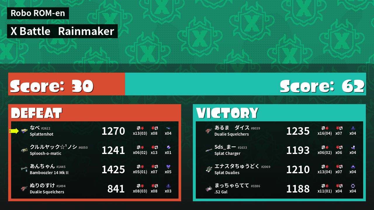 | Mode | Rainmaker - X Battle | ||