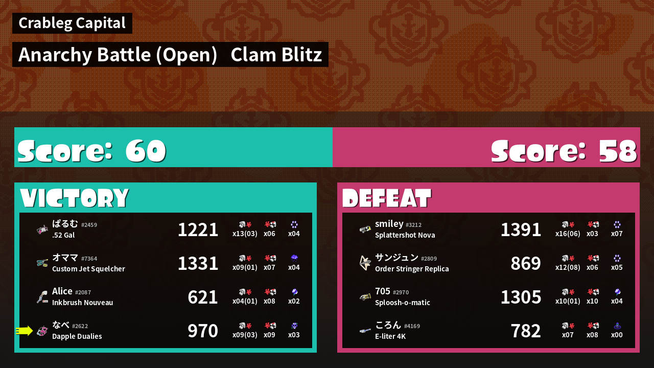 | Mode | Clam Blitz - Anarchy Battle (Open) | ||