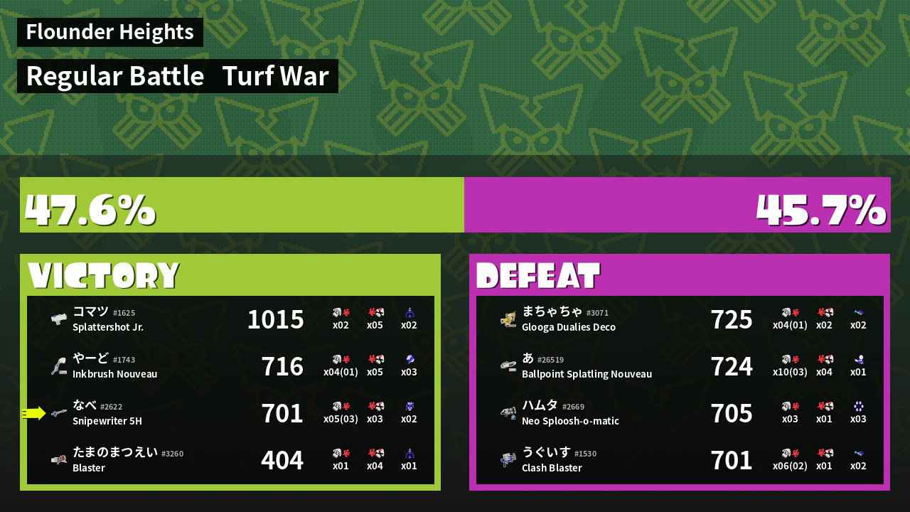 | Medals | #1 Overall Splatter #1 Super Jump Spot #1 Splat Assister | ||