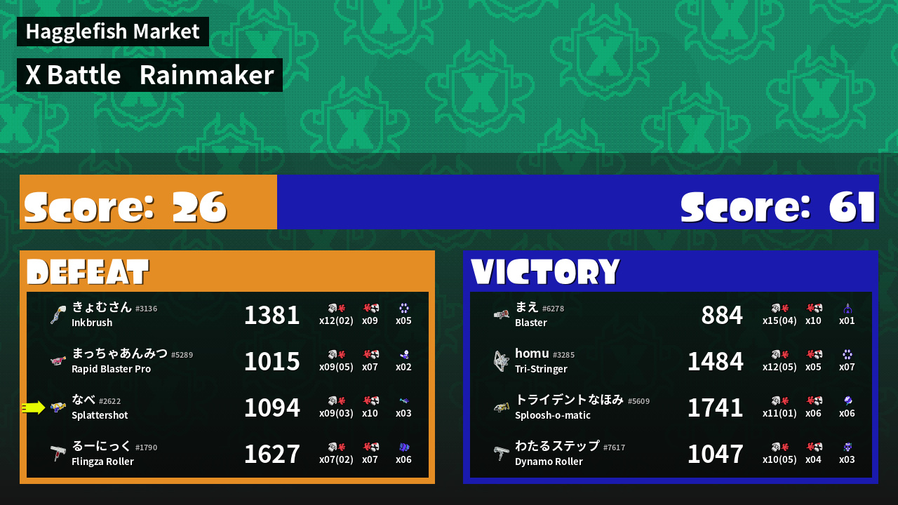 | Mode | Rainmaker - X Battle | ||