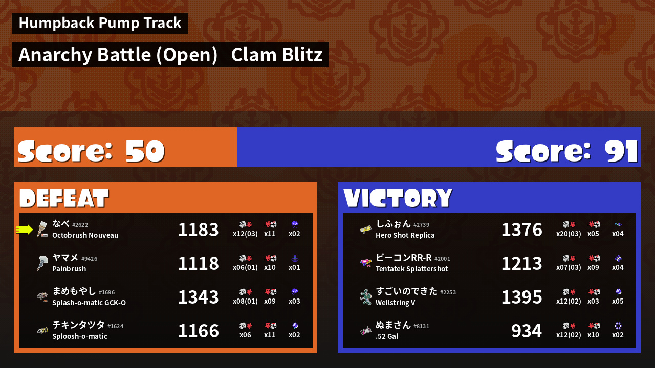 | Mode | Clam Blitz - Anarchy Battle (Open) |