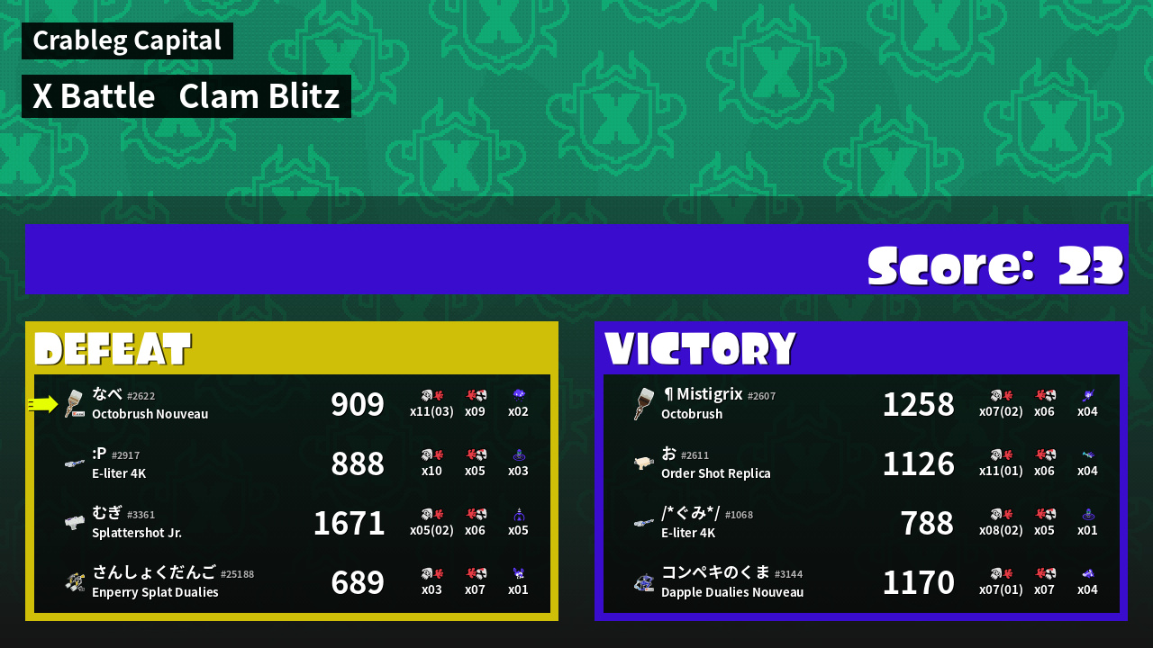 | Mode | Clam Blitz - X Battle | ||