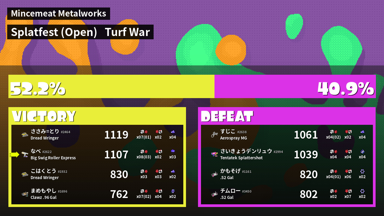 | Medals | #1 Overall Splatter #1 Splat Assister #1 Ink Storm User | ||