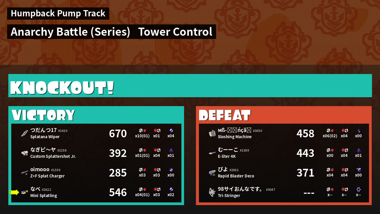 | Medals | #1 Splat Assister #1 Tower Stopper First Splat! | ||