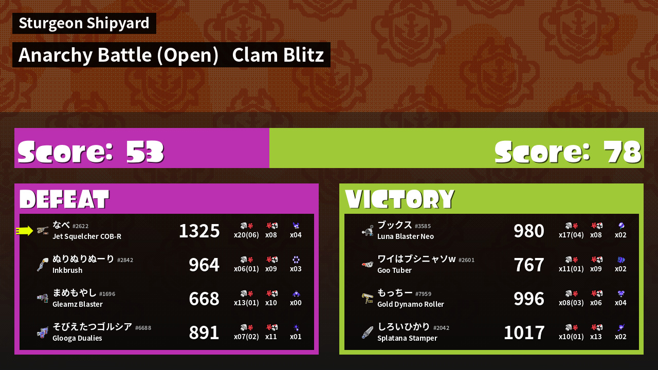 | Mode | Clam Blitz - Anarchy Battle (Open) |