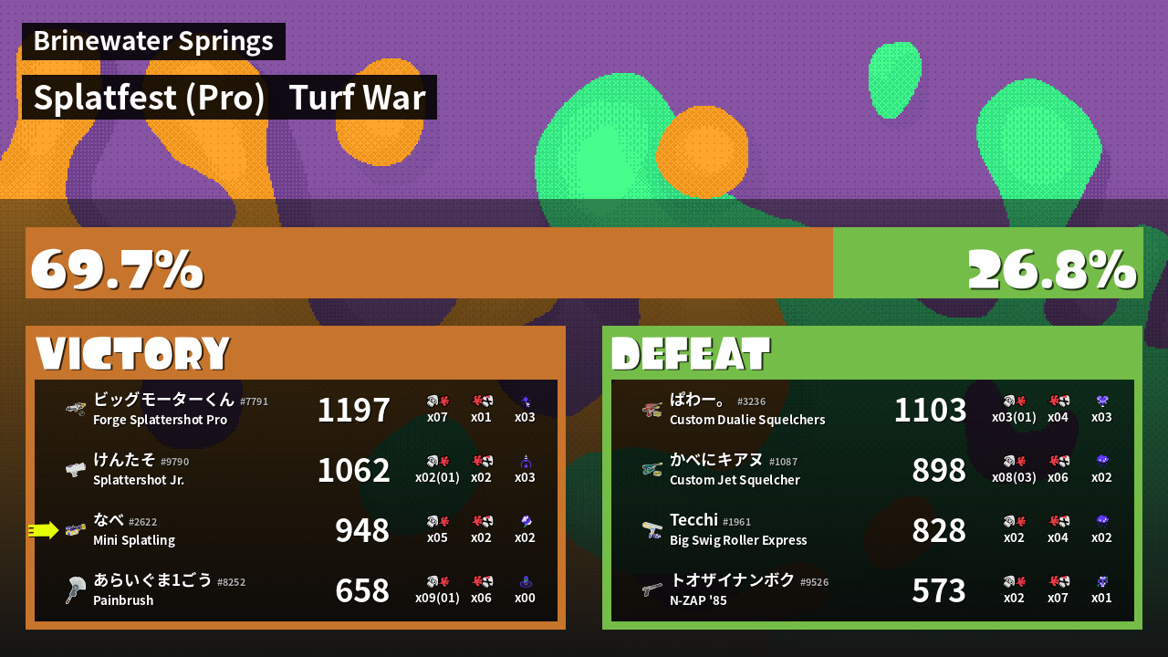 | Mode | Turf War - Splatfest (Pro) | ||