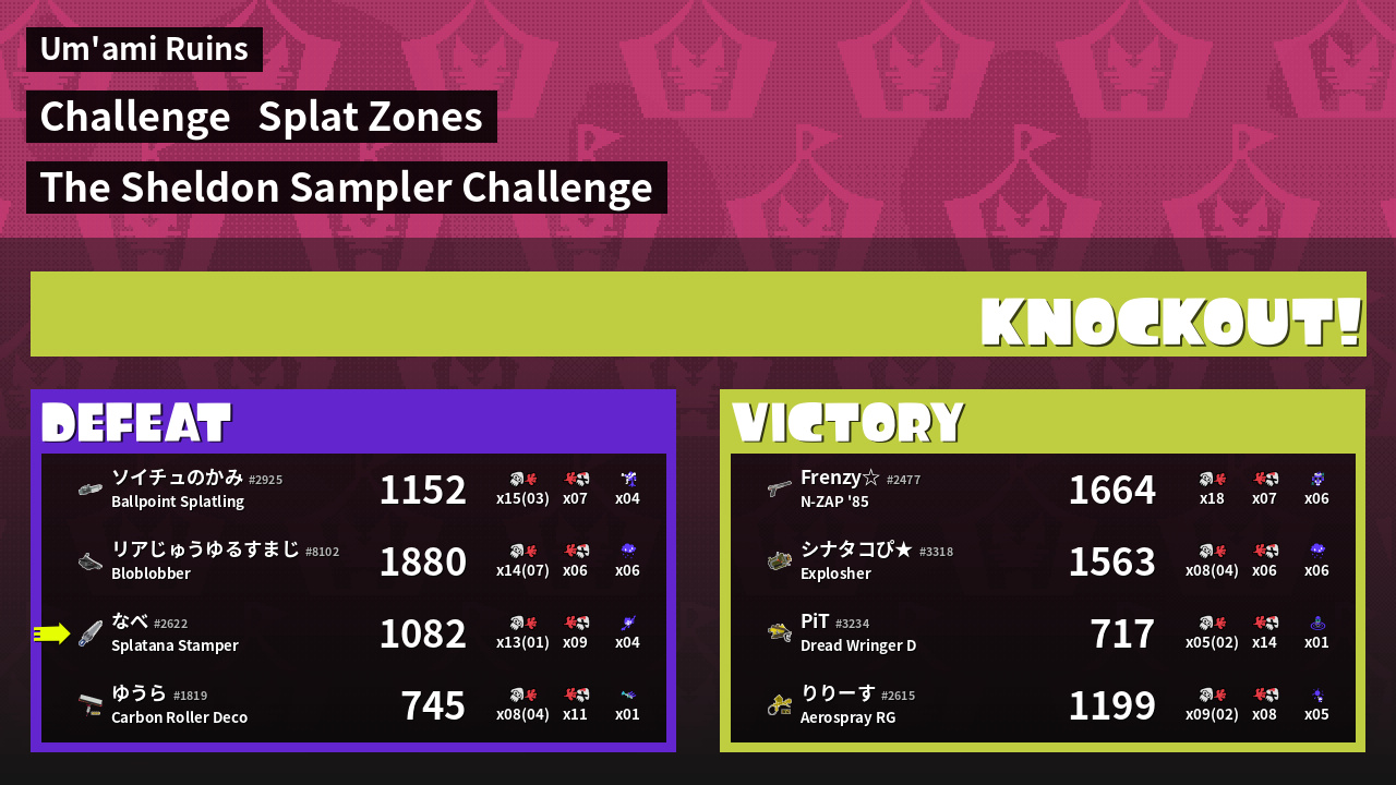 | Medals | #1 Splat Zone Guard #1 Super Jump Spot #1 Enemy Splatter | ||