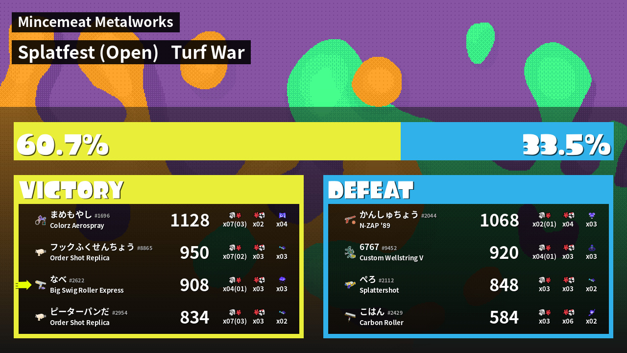 | Weapon | Big Swig Roller Express ( Angle Shooter / Ink Storm) | ||