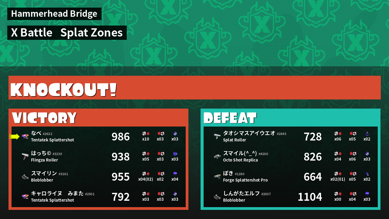 | Mode | Splat Zones - X Battle | ||