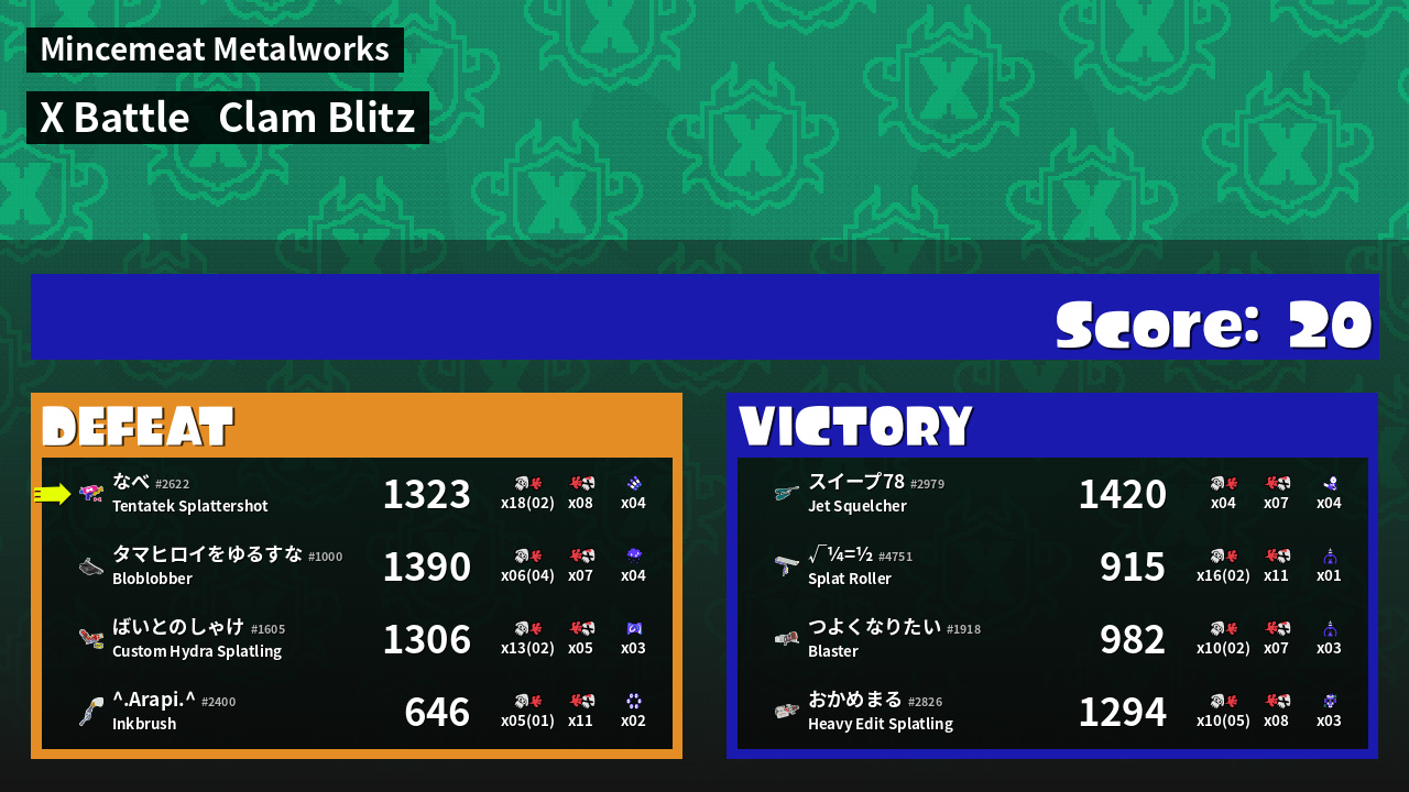 | Medals | #1 Overall Splatter #1 Popular Target #1 Enemy Splatter | ||