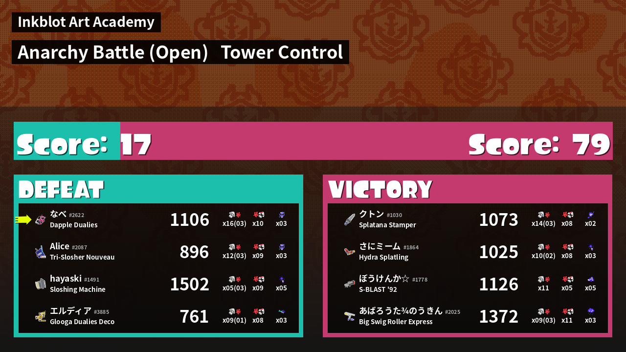 | Mode | Tower Control - Anarchy Battle (Open) | ||