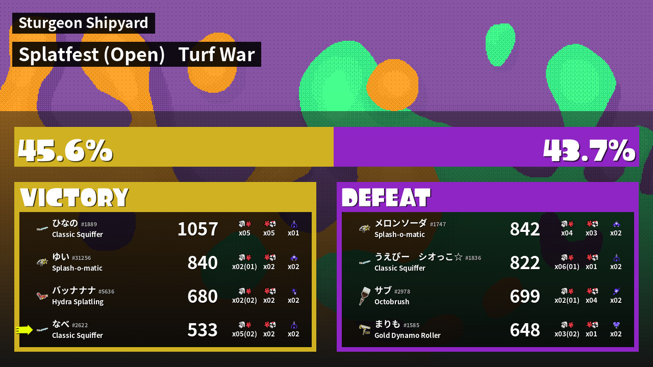 | Medals | #1 Overall Splatter #1 Splat Assister First Splat! | ||
