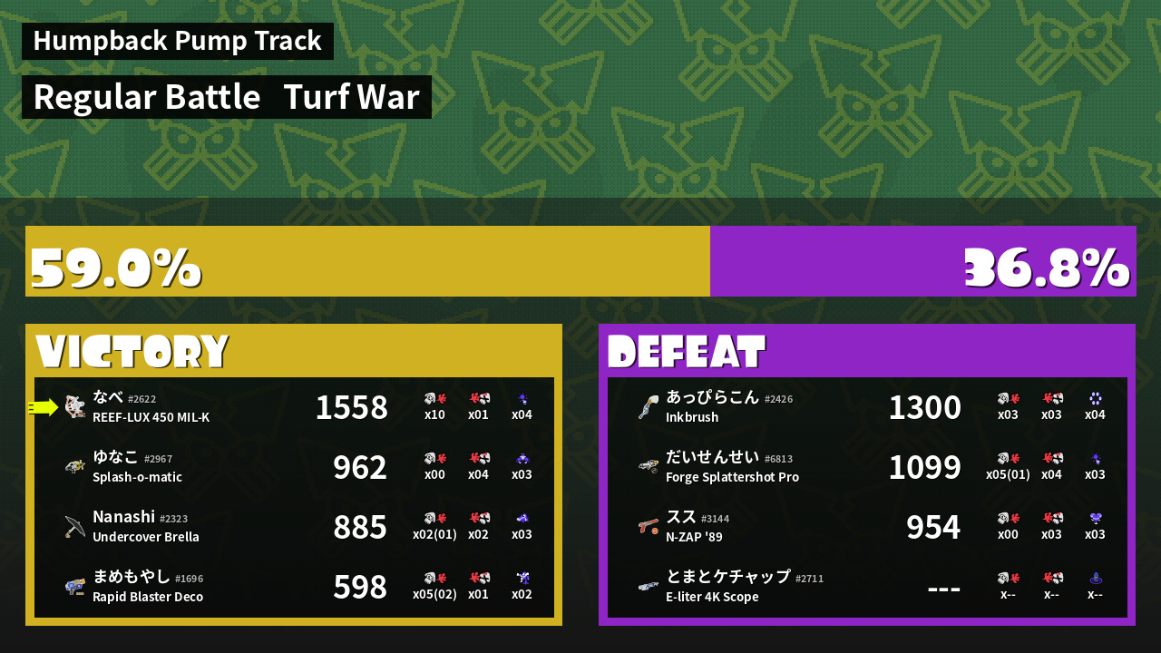| Medals | #1 Overall Splatter #1 Turf Inker #1 Enemy-Base Inker |