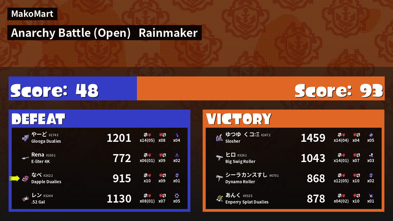 | Mode | Rainmaker - Anarchy Battle (Open) | ||