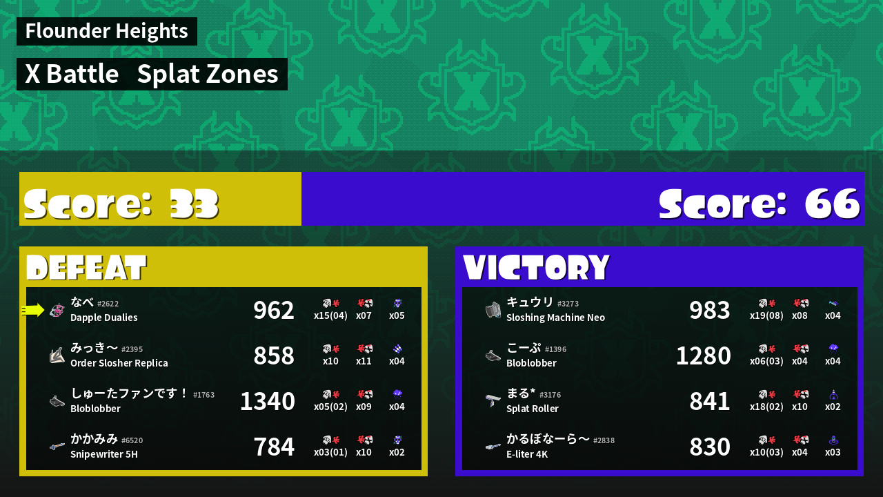 | Mode | Splat Zones - X Battle | ||