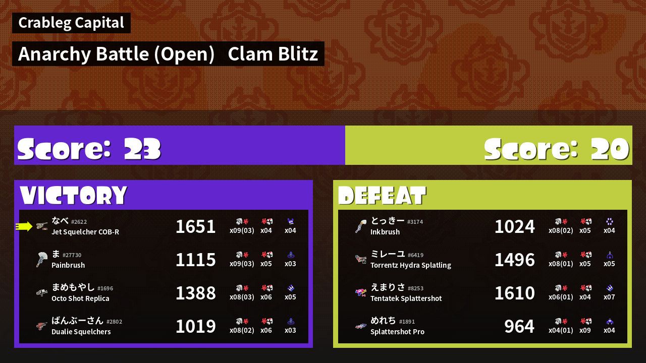 | Mode | Clam Blitz - Anarchy Battle (Open) |