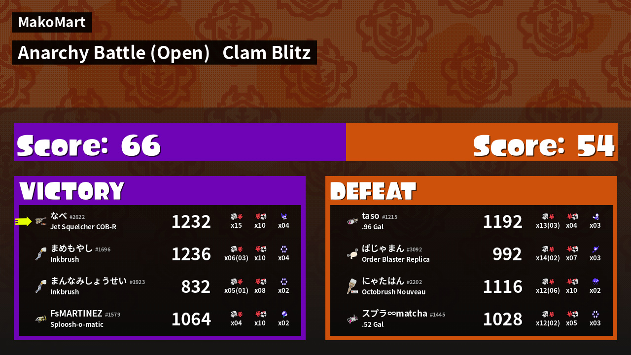 | Mode | Clam Blitz - Anarchy Battle (Open) |