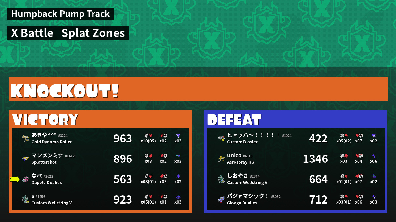 | Mode | Splat Zones - X Battle | ||