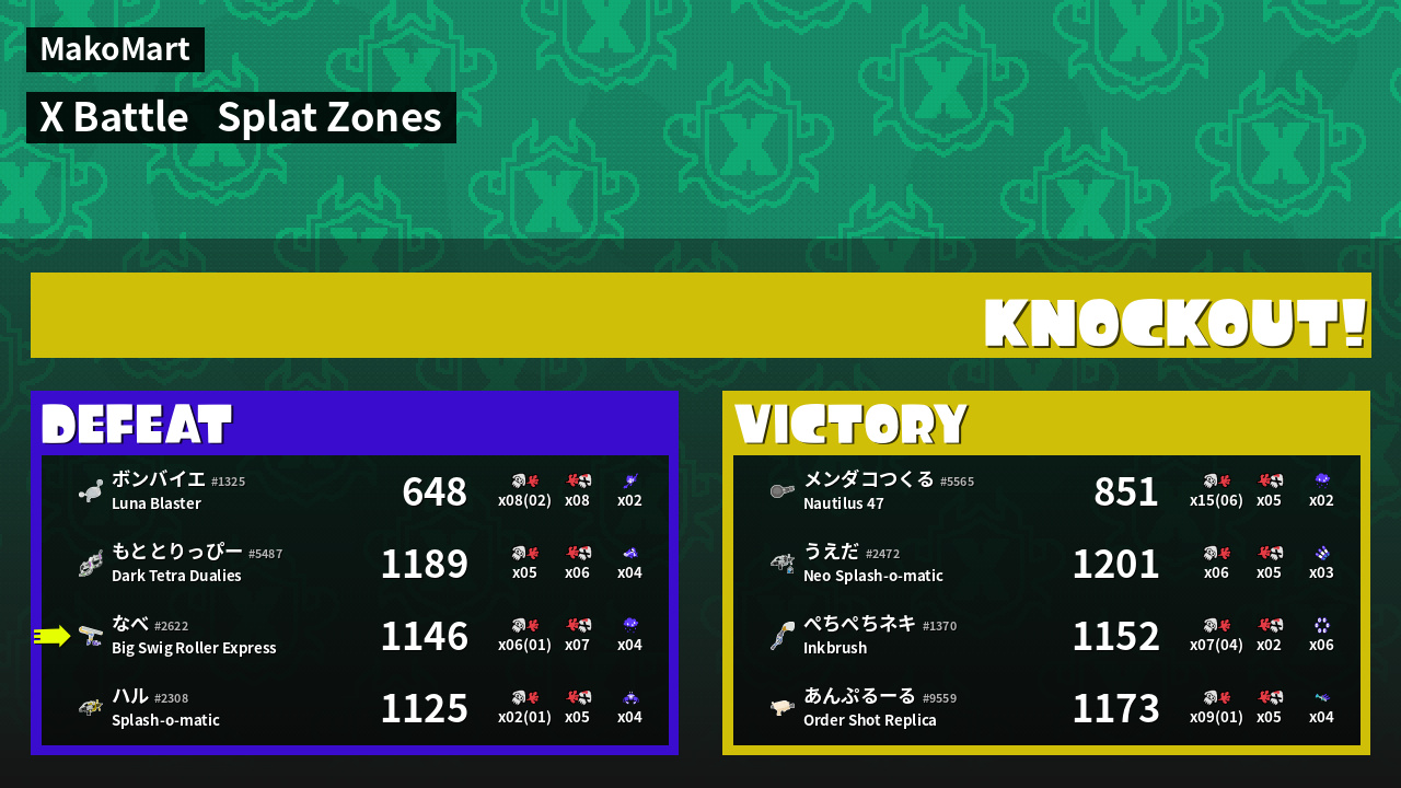 | Mode | Splat Zones - X Battle | ||