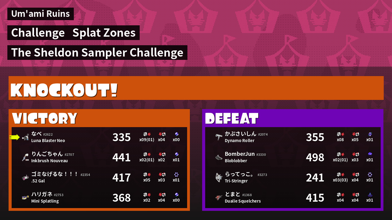 | Challenge | The Sheldon Sampler Challenge Make the most of random weapons! | ||