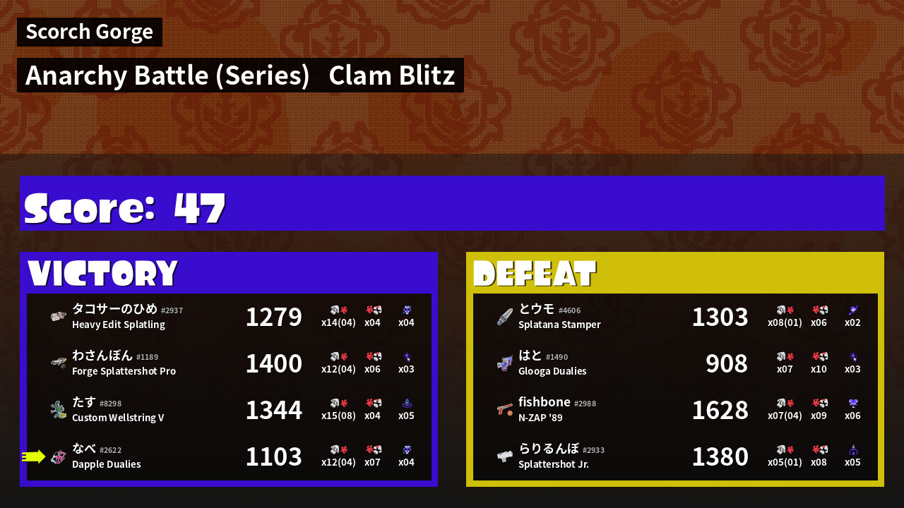 | Mode | Clam Blitz - Anarchy Battle (Series) | ||