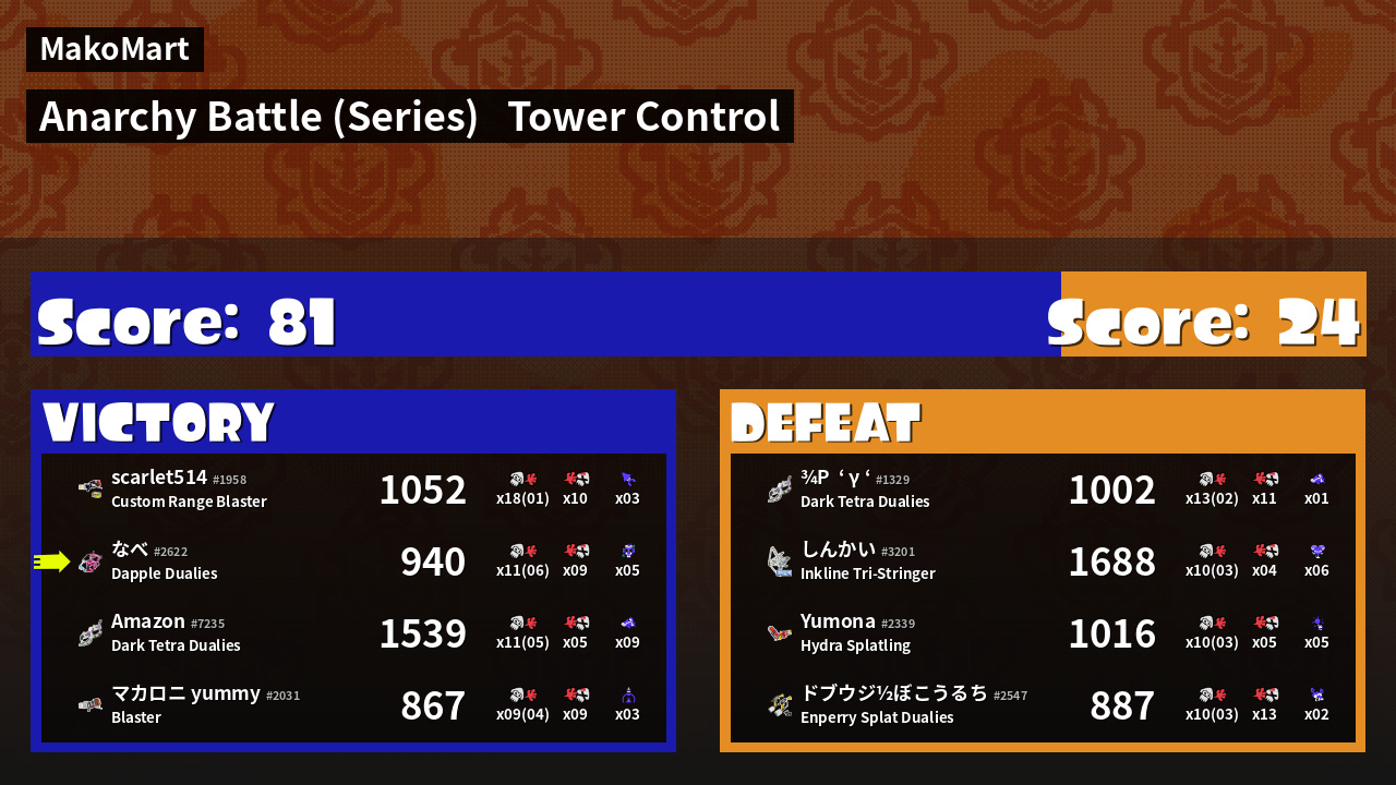 | Mode | Tower Control - Anarchy Battle (Series) | ||