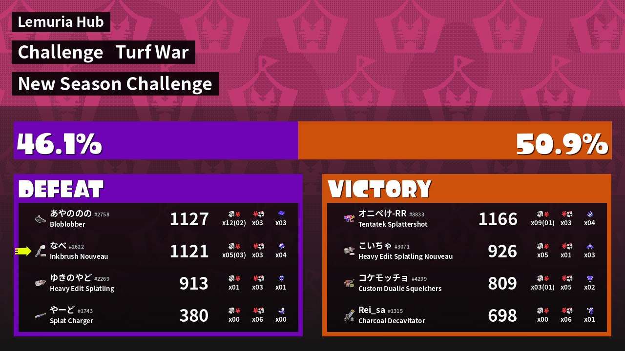 | Medals | #1 Home-Base Inker #1 Splat Assister #1 Ground Traveler | ||