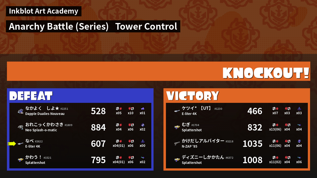 | Medals | #1 Splat Assister #1 Tower Stopper #2 Overall Splatter | ||