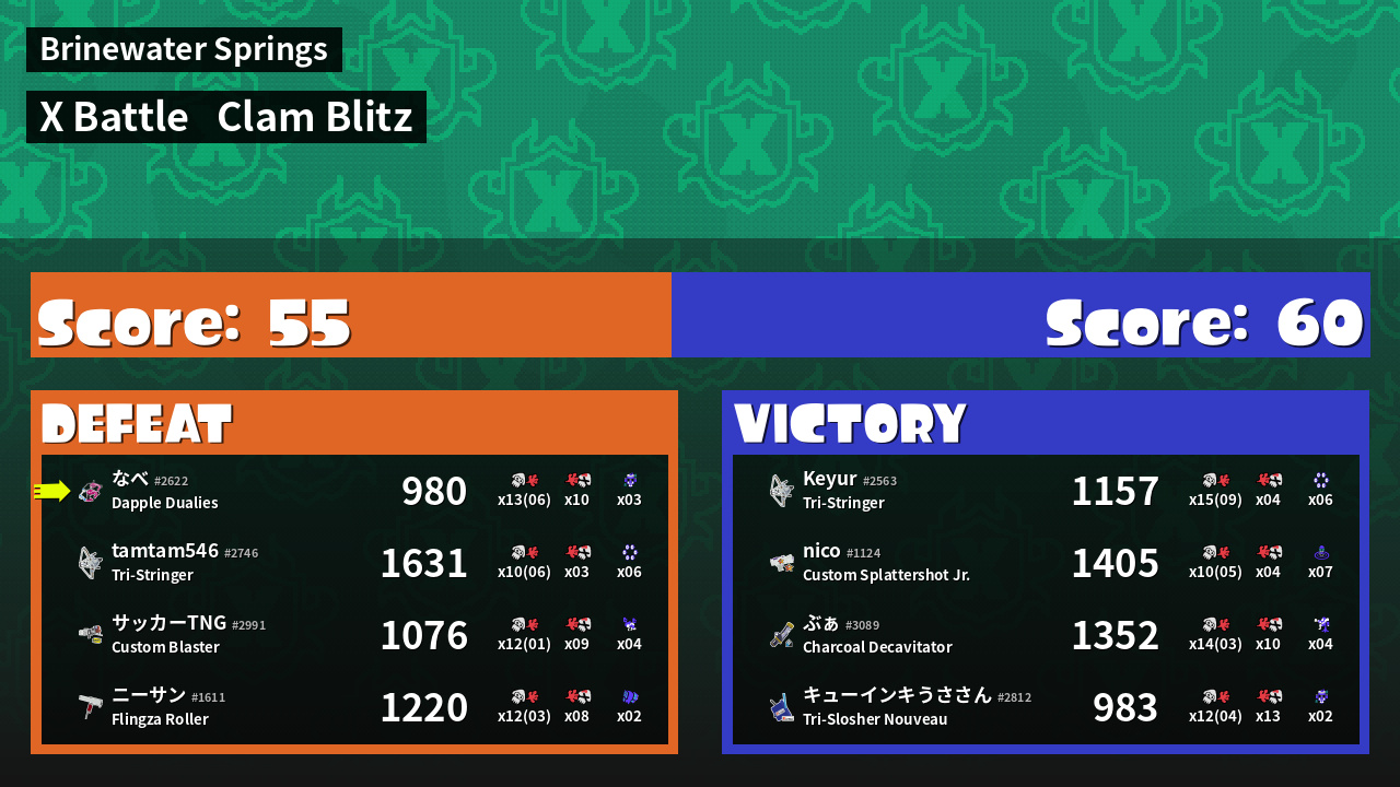 | Mode | Clam Blitz - X Battle | ||