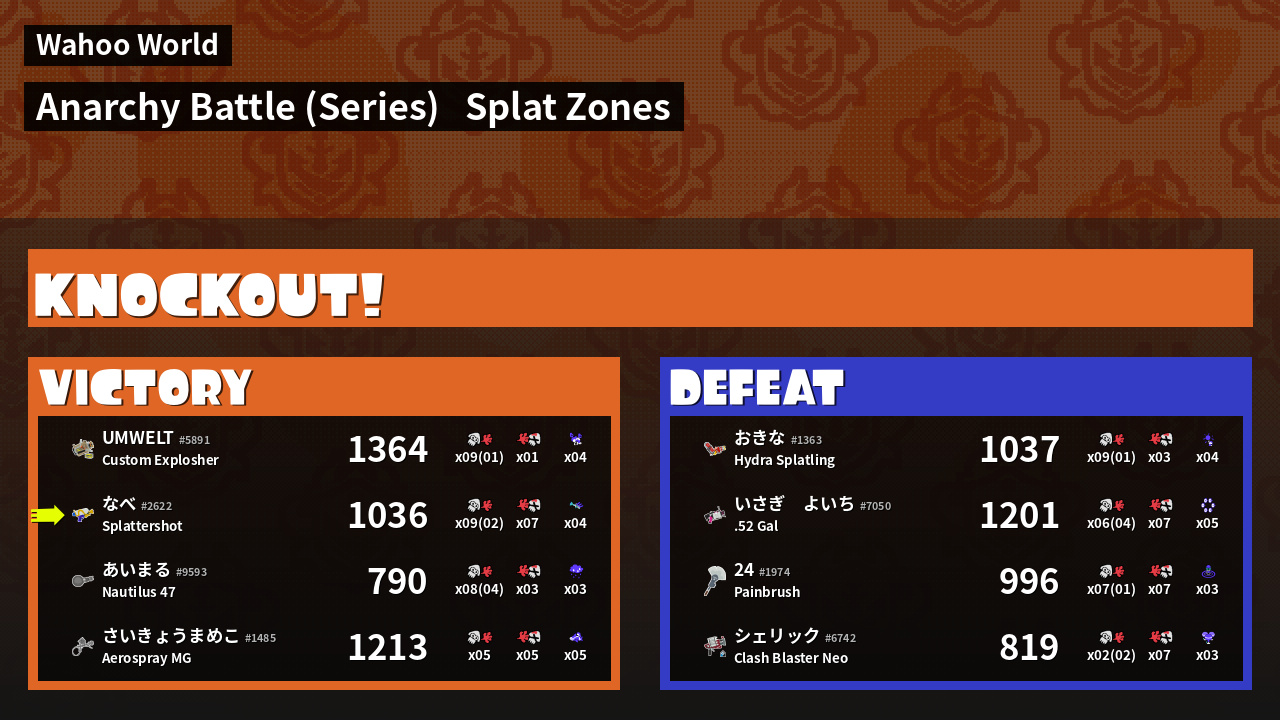 | Mode | Splat Zones - Anarchy Battle (Series) | ||