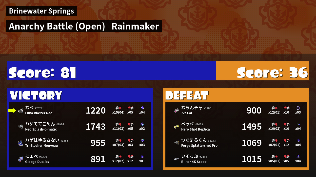 | Mode | Rainmaker - Anarchy Battle (Open) | ||